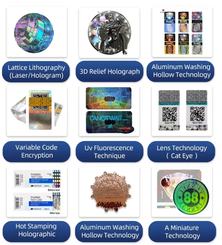 अँटी-काउंटरफाइटिंग लेबलअद्वितीय त्रिमितीय प्रतिमा प्रभाव आणि उच्च सुरक्षा आहे. या प्रकारच्या स्टिकरने लेसर हस्तक्षेपाच्या तत्त्वाद्वारे विशिष्ट माध्यमावर विशिष्ट प्रतिमा किंवा त्रिमितीय स्वरूपात माहिती नोंदविली, ज्यामुळे कॉपी करणे कठीण आहे.
