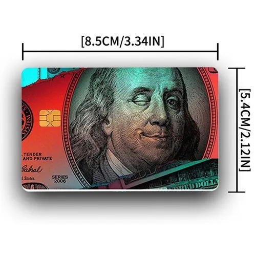 क्रेडिट कार्ड स्टिकर्सपूर्ण कव्हर, हाफ कव्हर, कार्ड नंबर किंवा चिपसाठी विंडोसह कव्हर आणि मायक्रोचिपसाठी प्री-कट क्षेत्रासह कव्हरसह विविध शैलींमध्ये येतात. आकार सामान्यतः मानक आकाराच्या क्रेडिट कार्डांमध्ये बसण्यासाठी डिझाइन केला जातो, अंदाजे 5.3*8.5cm.