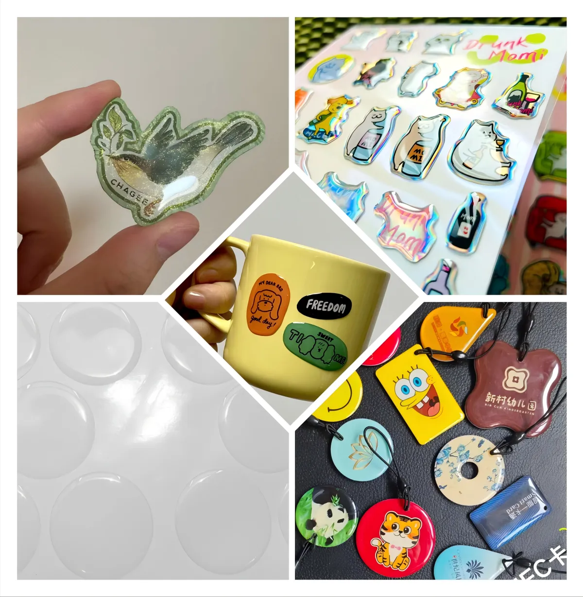 A3: इलेक्ट्रॉनिक उत्पादनांसाठी ब्रँड लोगो, औद्योगिक उपकरणांसाठी चेतावणी लेबले, ऑटोमोटिव्ह भागांसाठी सजावटीचे डिकल्स, भेटवस्तूंसाठी वैयक्तिकृत स्टिकर्स आणि वैद्यकीय उपकरणांसाठी ओळख लेबले यासारख्या उद्योगांमध्ये इपॉक्सी रेजिन स्टिकर्सचा मोठ्या प्रमाणावर वापर केला जातो.