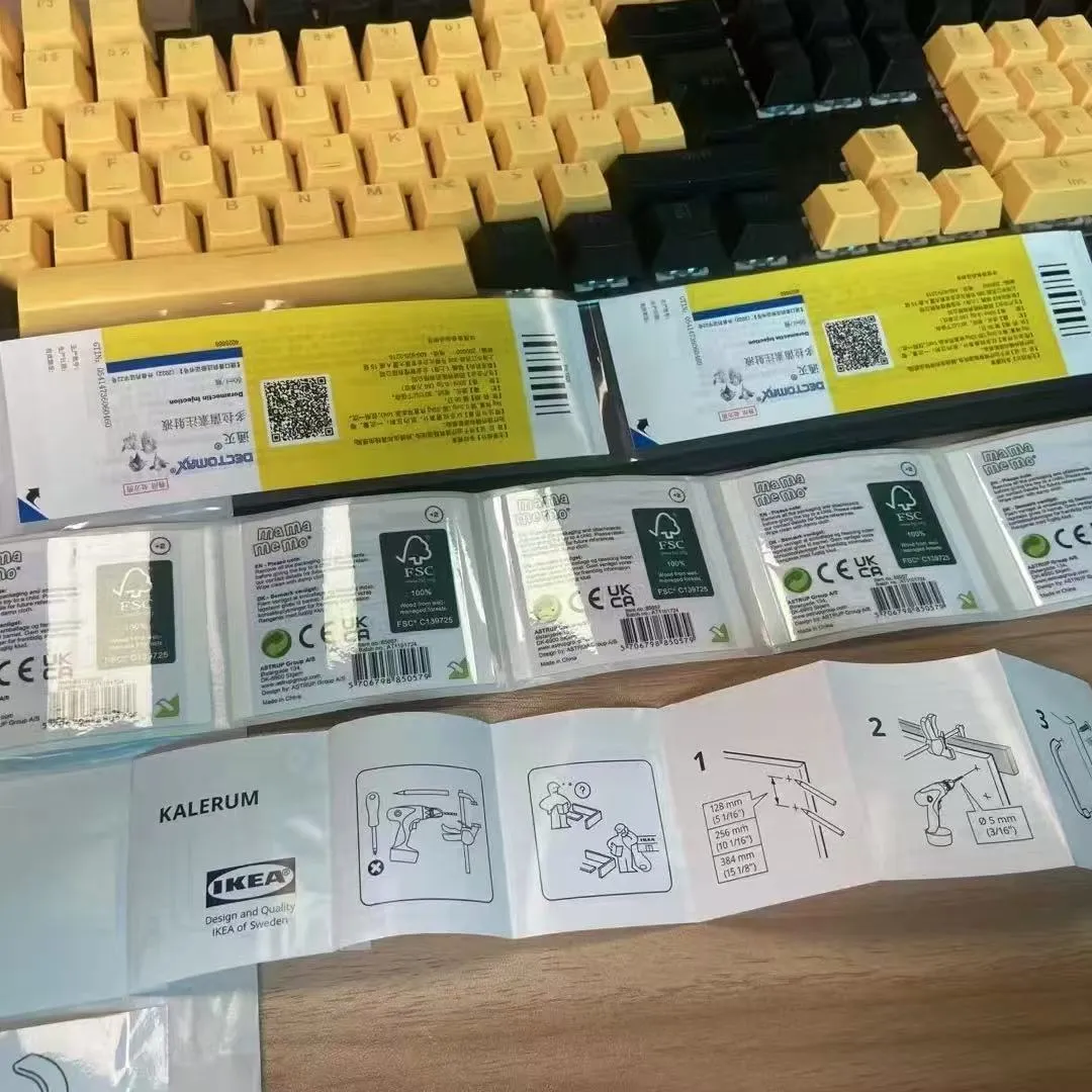दुमडलेली लेबले बॉटल बॉडी, टेस्ट ट्यूब आणि लहान इलेक्ट्रॉनिक उपकरणांसारख्या अत्यंत मर्यादित उत्पादनांच्या पृष्ठभागावर त्यांच्या कव्हरेज क्षेत्राच्या अनेक पट छपाईची जागा प्रदान करतात. दुमडलेल्या लेबलांची माहिती स्तरित आहे: सर्वात बाहेरील स्तर म्हणजे सारांश माहिती, जसे की उत्पादनाचे नाव आणि लोगो आणि आतील स्तर तपशीलवार माहिती आहे, जसे की घटक सूची, वापर सूचना, बारकोड, बहुभाषी भाषांतर इ.