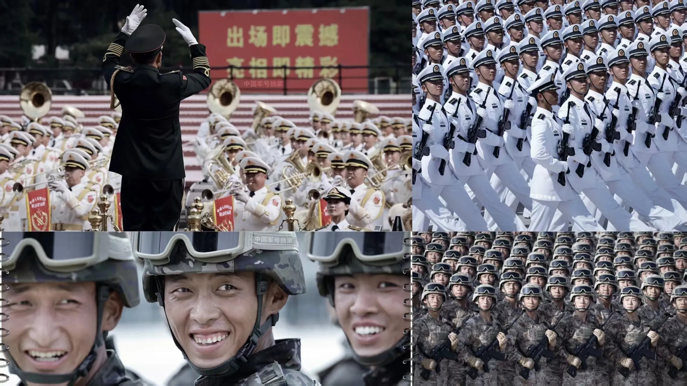 टियानॅनमेन स्क्वेअरमध्ये, 45 फॉर्मेशन्स आणि इचेलॉन्स अनुक्रमे गेले आणि एक संयुक्त सैन्य बँड ज्यामध्ये एक हजाराहून अधिक अधिकारी आणि सैनिकांनी त्या काळातील शक्तिशाली आवाज वाजविला.