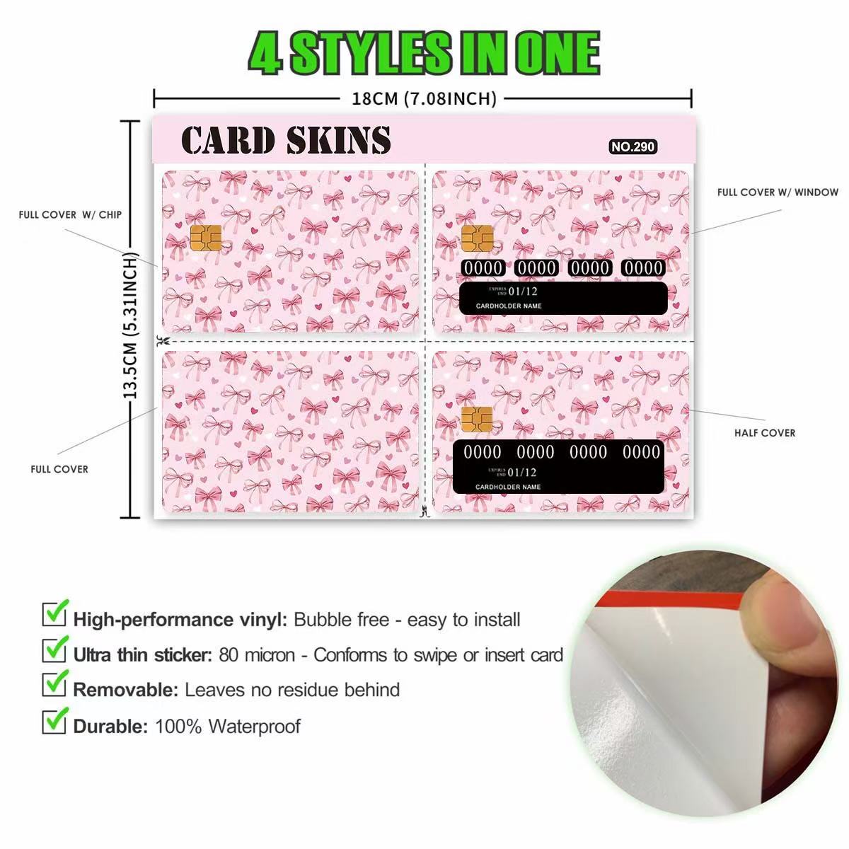 आमचे क्रेडिट कार्ड स्टिकर्स जागतिक क्लायंटच्या विविध गरजा पूर्ण करण्यासाठी कस्टमायझेशनवर जोरदार लक्ष केंद्रित करून डिझाइन केले आहेत. आम्ही ग्राहकांना निवडण्यासाठी चार शैली ऑफर करतो, ज्यामध्ये सौंदर्यविषयक प्राधान्यांची विस्तृत श्रेणी समाविष्ट आहे.