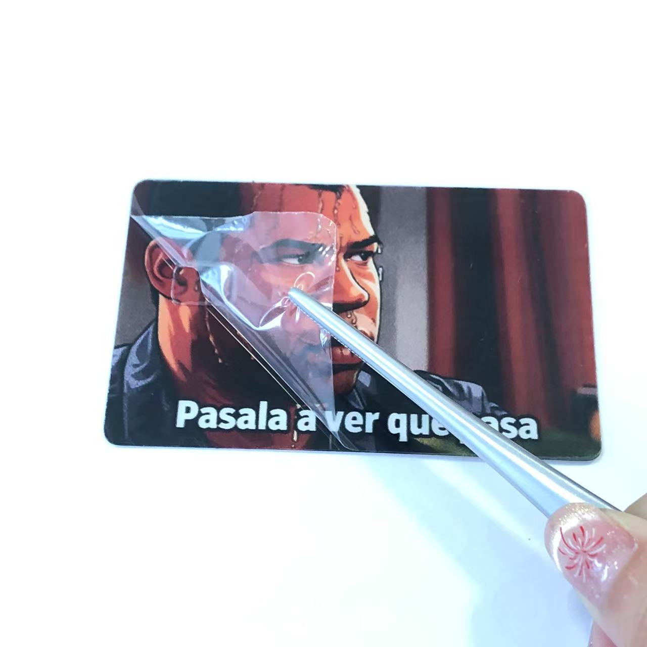 वाहतुकीदरम्यान उत्पादनाची गुणवत्ता सुनिश्चित करण्यासाठी, प्रत्येक क्रेडिट कार्ड स्टिकर पृष्ठभागावर संरक्षणात्मक फिल्मसह सुसज्ज आहे. हा संरक्षक स्तर स्क्रॅच, धूळ आणि संक्रमणामध्ये होणाऱ्या इतर संभाव्य नुकसानांपासून प्रभावीपणे स्टिकर्सचे संरक्षण करतो. वस्तू मिळाल्यावर, ग्राहकांना क्रेडिट कार्ड स्टिकर्सचे स्पष्ट आणि दोलायमान स्वरूप दिसण्यासाठी फक्त संरक्षक फिल्म सोलणे आवश्यक आहे.