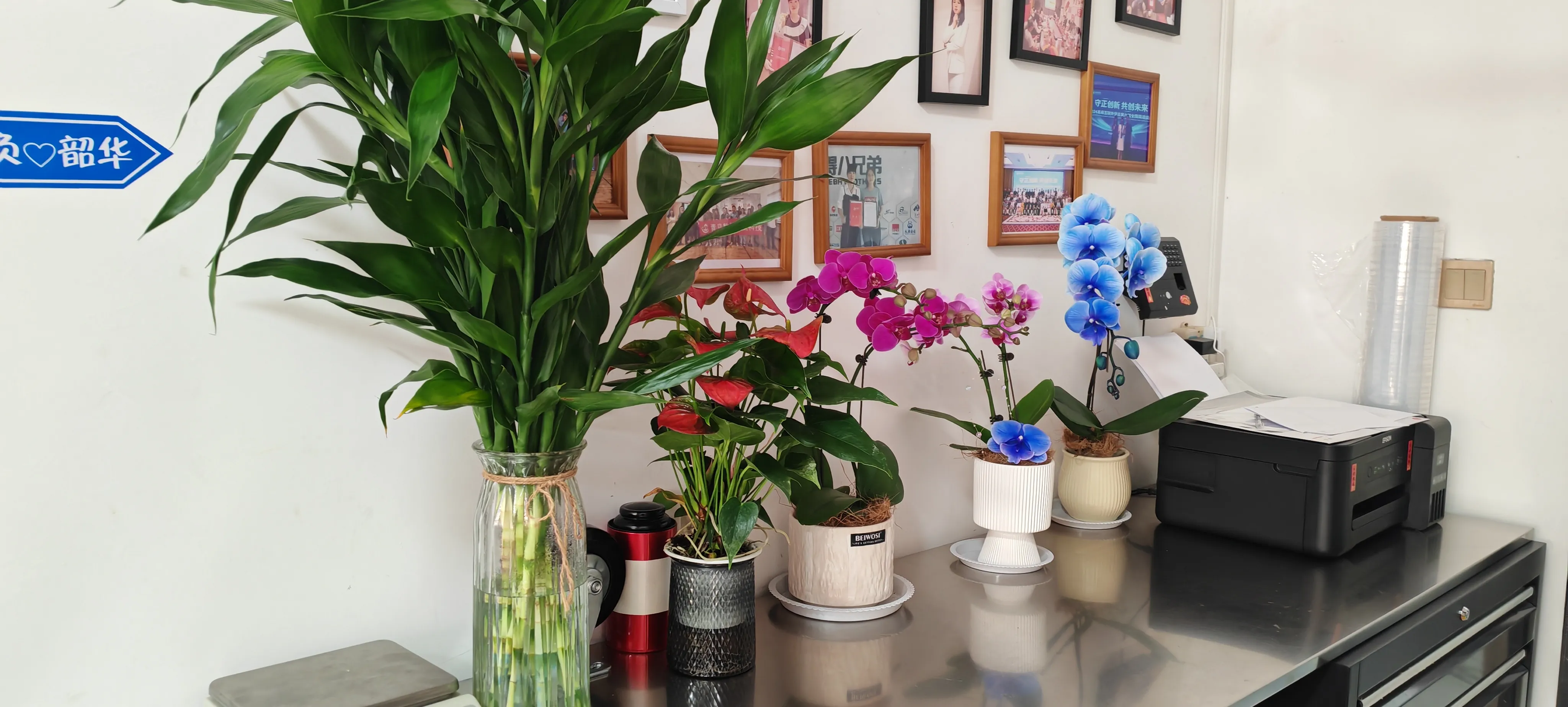 कार्यालय परिसरात वेळोवेळी आश्चर्यकारक उद्गार ऐकायला मिळतात. "काय आश्चर्य आहे! आज सकाळी जेव्हा मी कंपनीत आलो आणि खोलीभर फुले आणि झाडे पाहिली तेव्हा क्षणार्धात माझा मूड चांगला झाला." फ्लॉवर पॉट्सच्या बाहेरील बाजूस कंपनीचे सानुकूलित लेबल आणि स्टिकर्स देखील जोडलेले आहेत. चा ब्रँड लोगोजोजो पॅकआणि कुंडीच्या तळाशी फुलांची काळजी घेण्याच्या घोषणा छापल्या जातात.