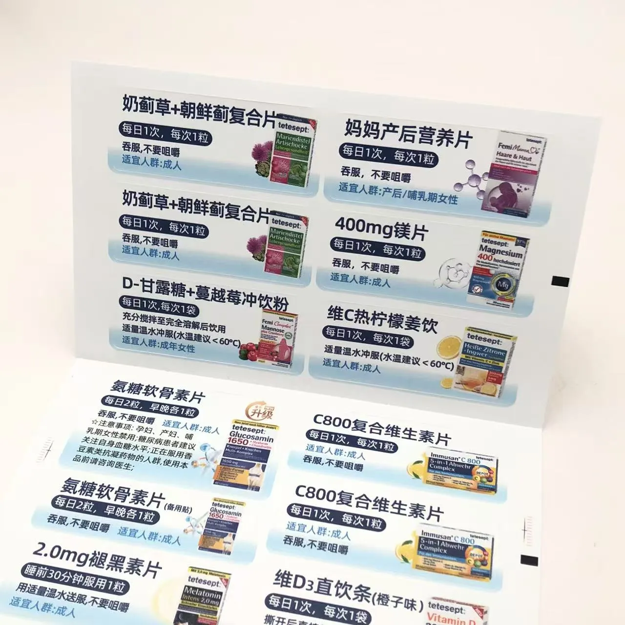 जागतिक आरोग्य मानकांची पूर्तता करण्यासाठी प्रत्येक लेबल स्पष्टपणे गंभीर माहिती प्रदर्शित करते: