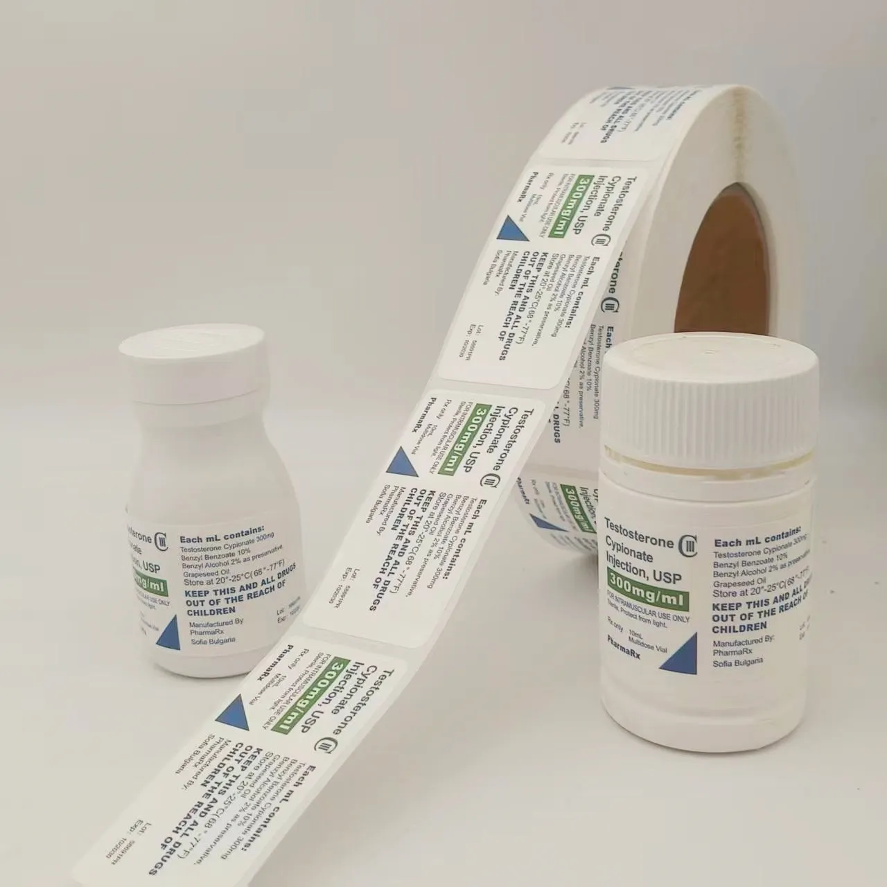 औषधांची नावे, डोस आणि गोळ्यांच्या वापराच्या सूचना ठळक अक्षरात हायलाइट केल्या आहेत. उत्पादन तपशील आणि चेतावणी विधाने यासारखी दुय्यम माहिती सुव्यवस्थित रीतीने व्यवस्था केली जाते, ज्यामुळे ते द्रुत वाचनासाठी सोयीचे होते. गोळीच्या बाटलीच्या लेबलचा फॉन्ट स्पष्ट आणि ओळखण्यास सोपा आहे, माहितीच्या ओळखीवर फॅन्सी डिझाइनचा प्रभाव टाळतो. गोळीच्या बाटलीचे लेबल स्थानिक फार्मास्युटिकल नियामक मानकांचे काटेकोरपणे पालन करते, सर्व आवश्यक माहिती वगळली जाणार नाही याची खात्री करून आणि चेतावणी विधाने, विरोधाभास इ.चे स्वरूप प्रमाणित आहे. गोळ्याच्या बाटलीच्या लेबलची सामग्री घर्षण आणि ओलावा-पुरावा करण्यासाठी प्रतिरोधक आहे आणि पेस्ट केल्यानंतर ते सहजपणे पडत नाही. आकार बाटलीच्या वक्रतेनुसार आहे, सुरकुत्या न पडता किंवा मुख्य माहिती अवरोधित केल्याशिवाय.
