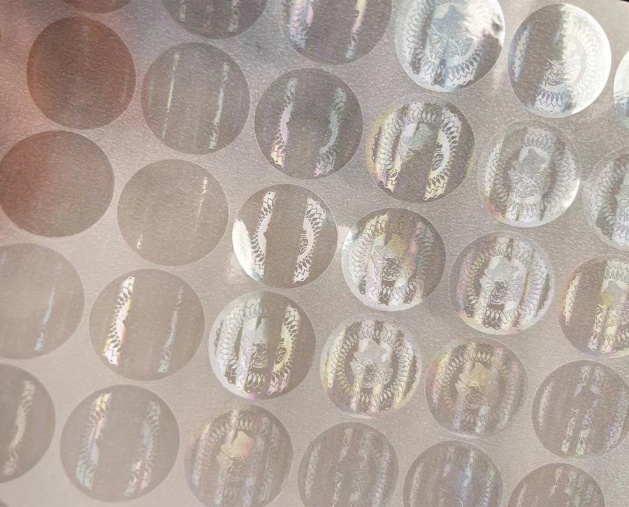 होलोग्राफिक पॅटर्न हॉट प्रेस ट्रान्सफर प्रिंटिंग: मेटल टेम्पलेटसह छापणारी उपकरणे विशिष्ट तापमानात प्रीहेट केली जातात आणि तंतोतंत नियंत्रित दाबाच्या अधीन असतात. त्यानंतर, आधीपासूनच मुद्रित केलेल्या सामान्य पॅटर्नसह विनाइल सामग्री मेटल टेम्पलेटचे बारकाईने पालन केले जाते. ही प्रक्रिया केवळ हे सुनिश्चित करते की होलोग्राफिक पॅटर्न लेबलशी दृढपणे जोडलेले आहे परंतु नमुन्याच्या तपशील आणि त्रिमितीयतेचे परिपूर्ण सादरीकरण देखील याची हमी देते. वेगवेगळ्या कोनातून, ते इंद्रधनुष्यासारखे एक अनोखा चमकदार प्रभाव प्रदर्शित करू शकते.